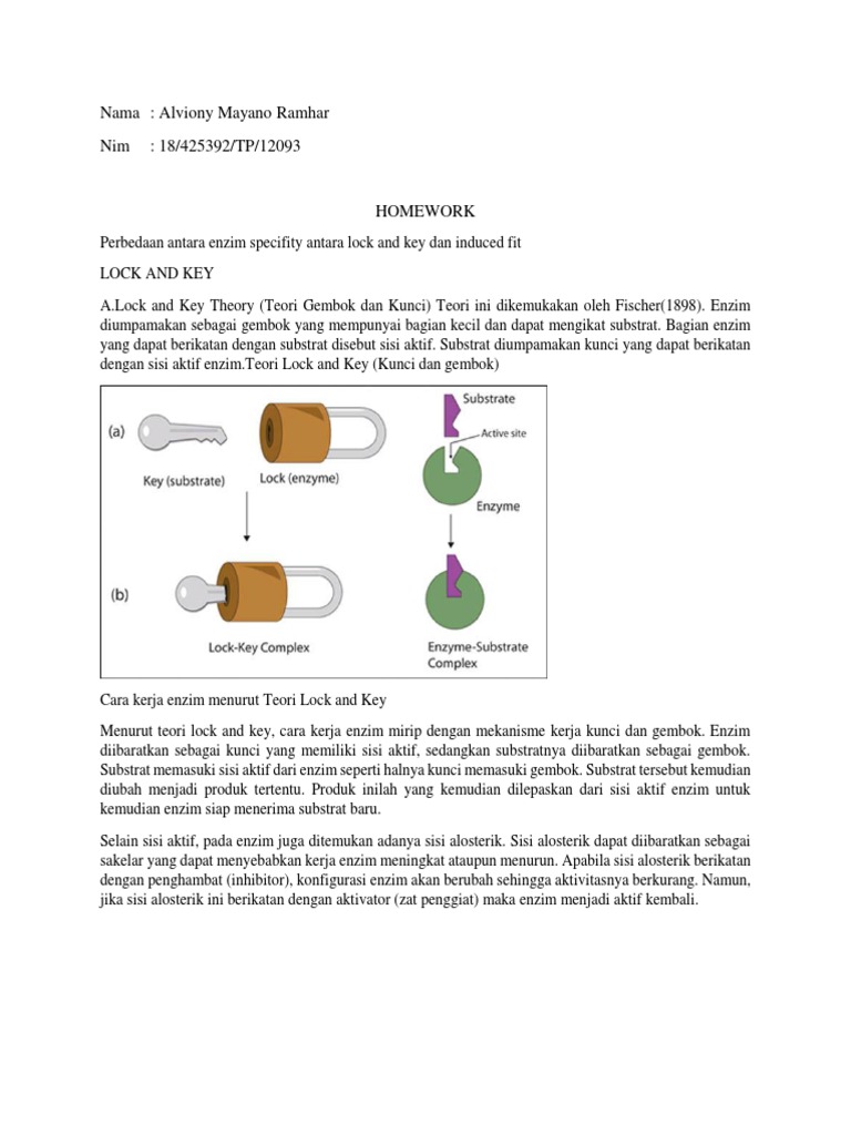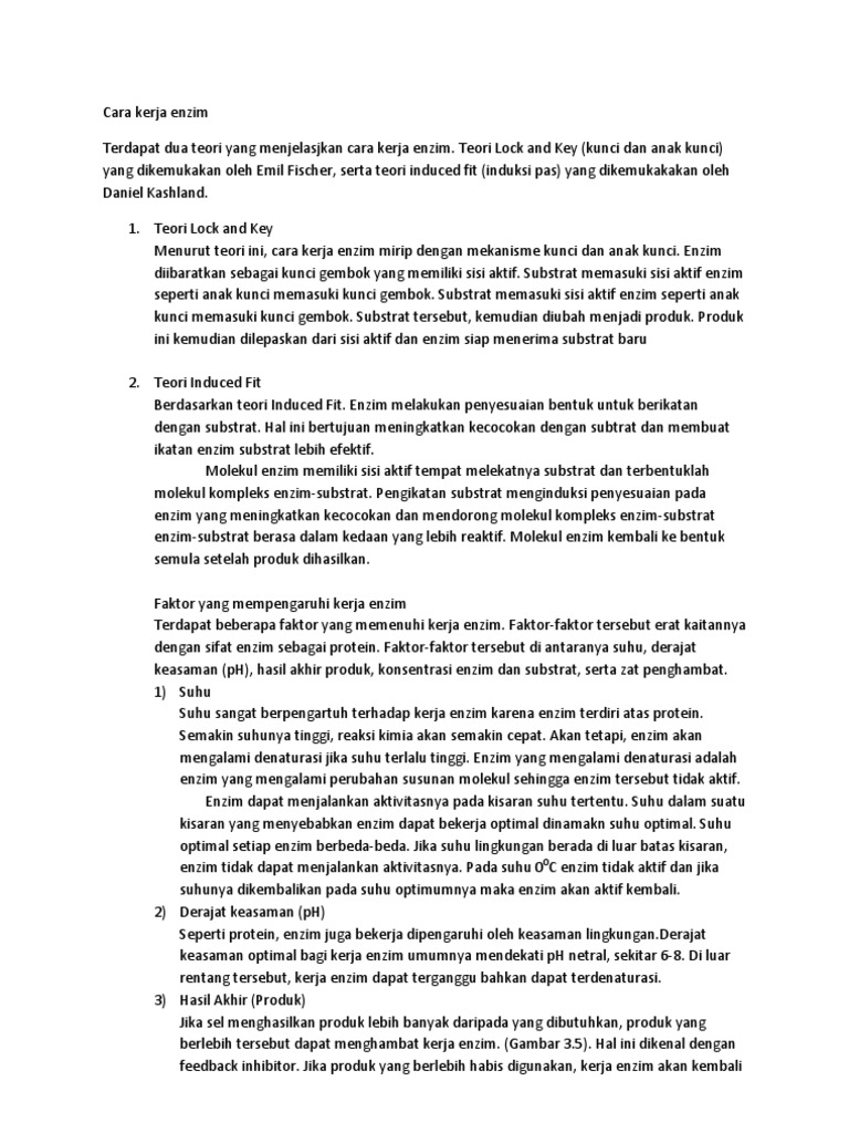 Cara Kerja Enzim Menurut Teori Lock And Key Dan Induced Fit Pdf