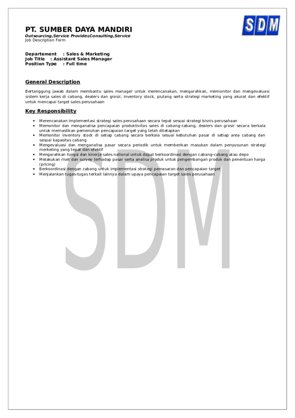 Tugas Dan Tanggung Jawab Assistant Sales Manager Dunia Kerja