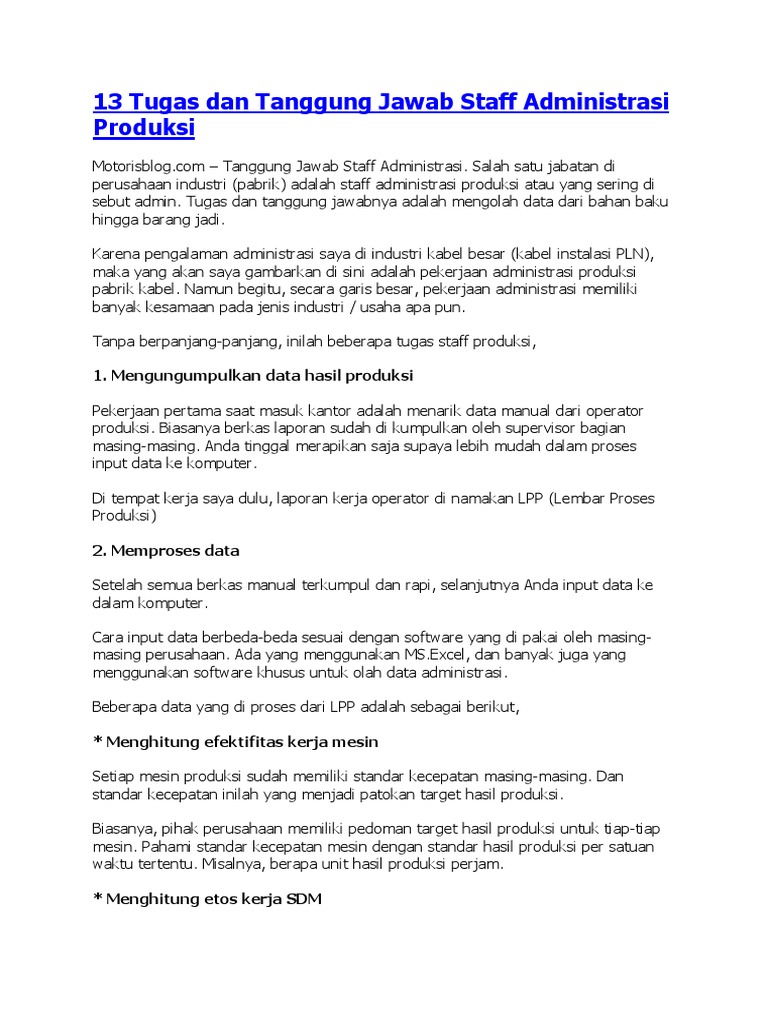 13 Tugas Dan Tanggung Jawab Staff Administrasi Produksi Pdf