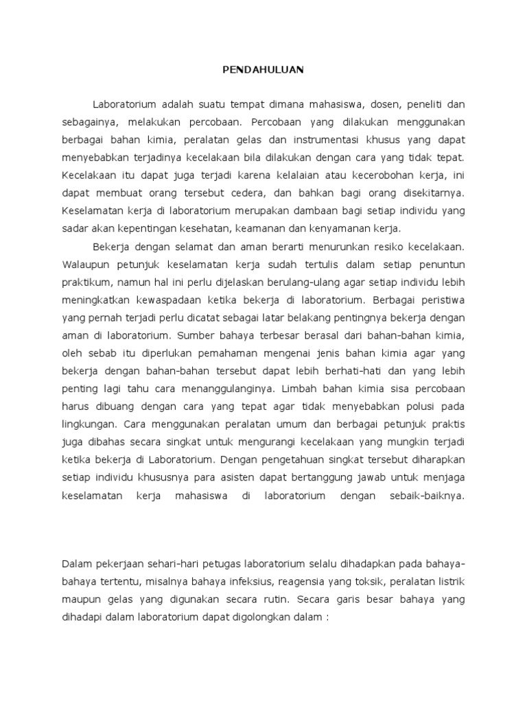 Pedoman Umum Cara Kerja Yang Benar Di Laboratorium K3 Pdf